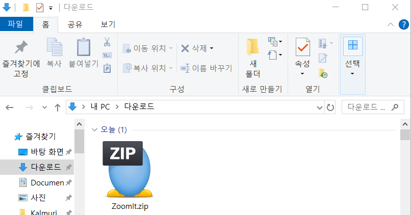3. 다운로드 된 ZoomIt.zip 파일 압축 해제