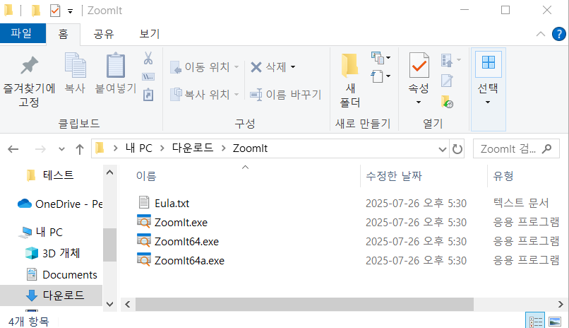 3. 다운로드 된 ZoomIt.zip 파일 압축 해제