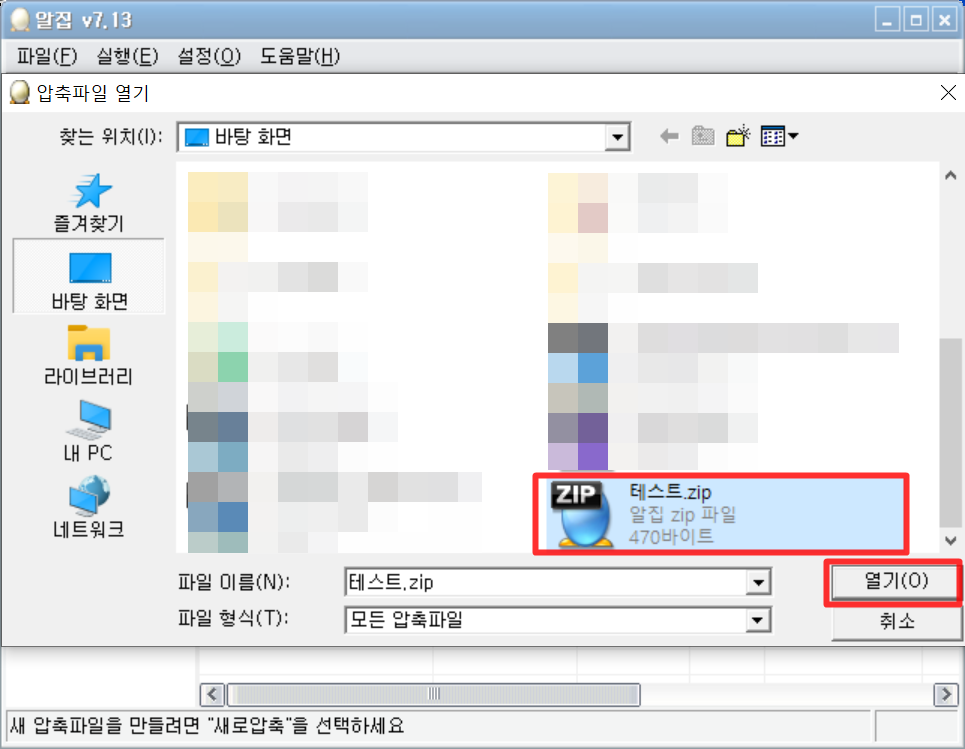바탕화면에 생성된 알집 아이콘을 더블클릭해 프로그램을 실행해줍니다.