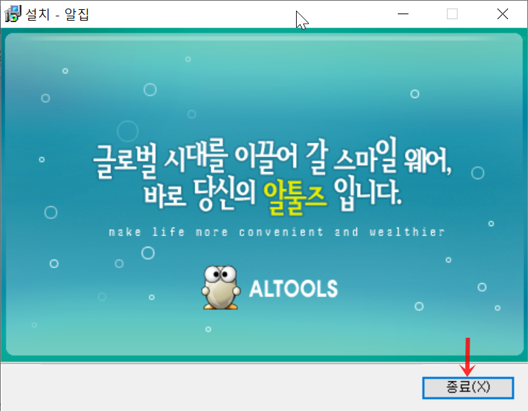 알집 설치완료되었습니다. 종료 를 눌러줍니다.