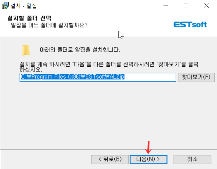 (나중에 다시 알집 최신버전으로 업데이트 설치하시면됩니다)