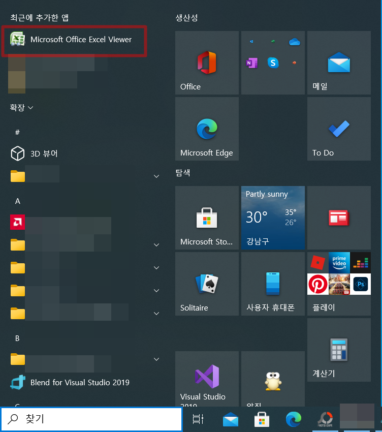 시작 클릭하고 Microsoft Office Excel Viewer 프로그램을 실행해주세요.