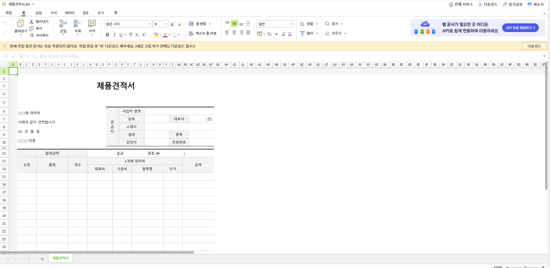 물론 나중에 엑셀파일을 작성하실려고 하신다면 엑셀을 직접 설치하셔야 합니다