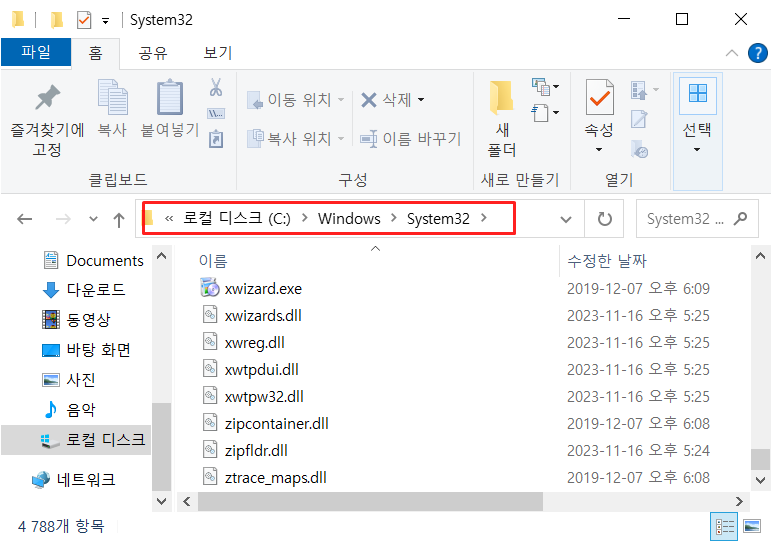 32비트 pc (x86) - c:\windows\system32 폴더