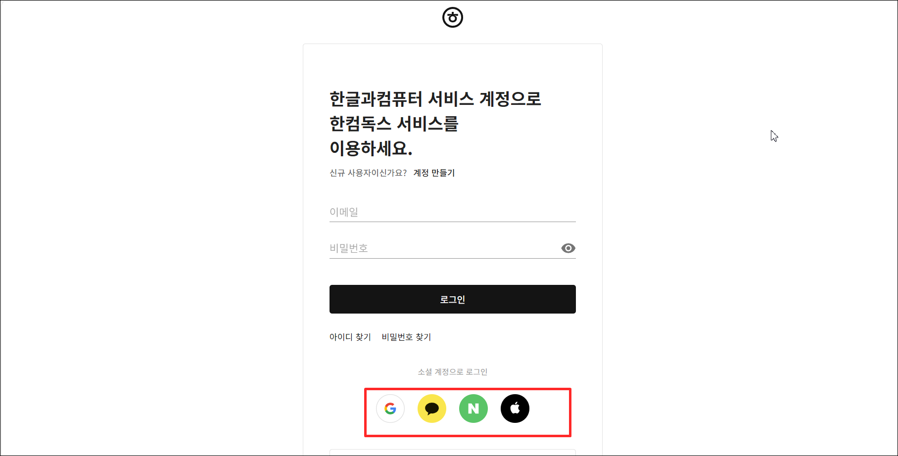 로그인 화면이 나오는데 한글과 컴퓨터 계정을 만드셔야 합니다!!