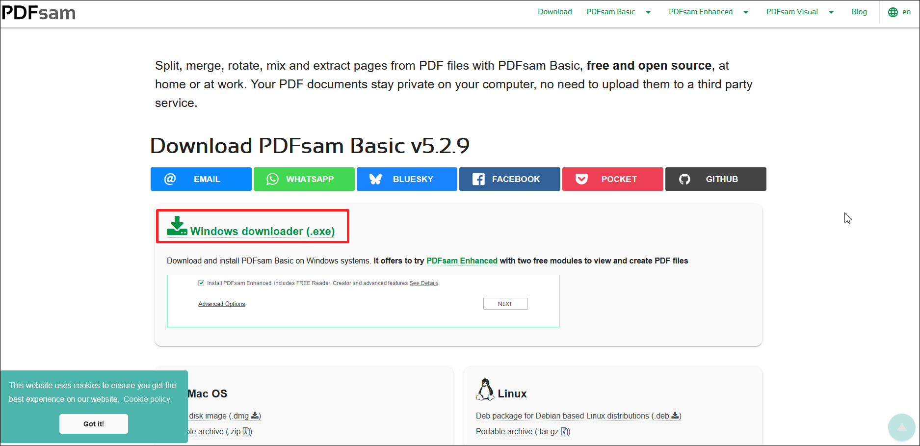 1. [PDFsam 웹사이트]( https://pdfsam.org/ )에 방문하여 PDFsam Basic 버전을 다운로드하세요.