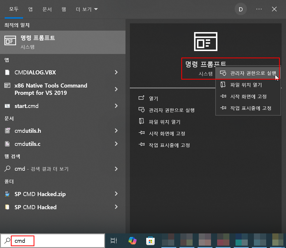 * 명령 프롬프트를 관리자 권한으로 실행하고 아래 명령어를 입력하여 DLL을 등록합니다: