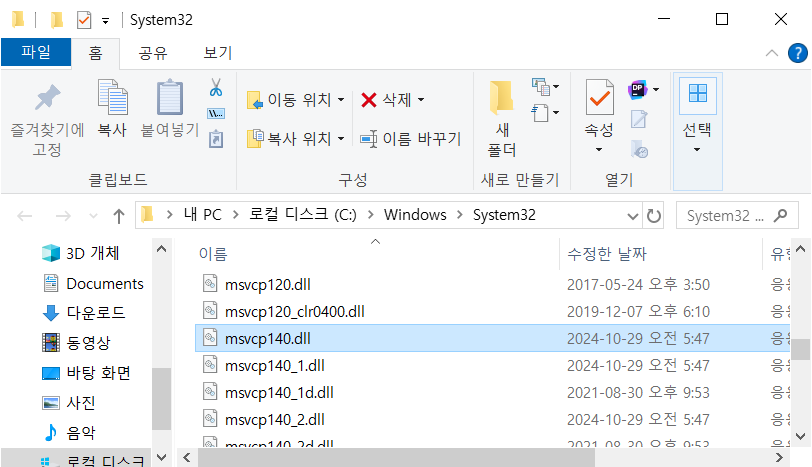 * 다운로드한 msvcp140.dll 파일을 복사후 C:\Windows\System32 폴더에 붙여 넣으시면 됩니다.